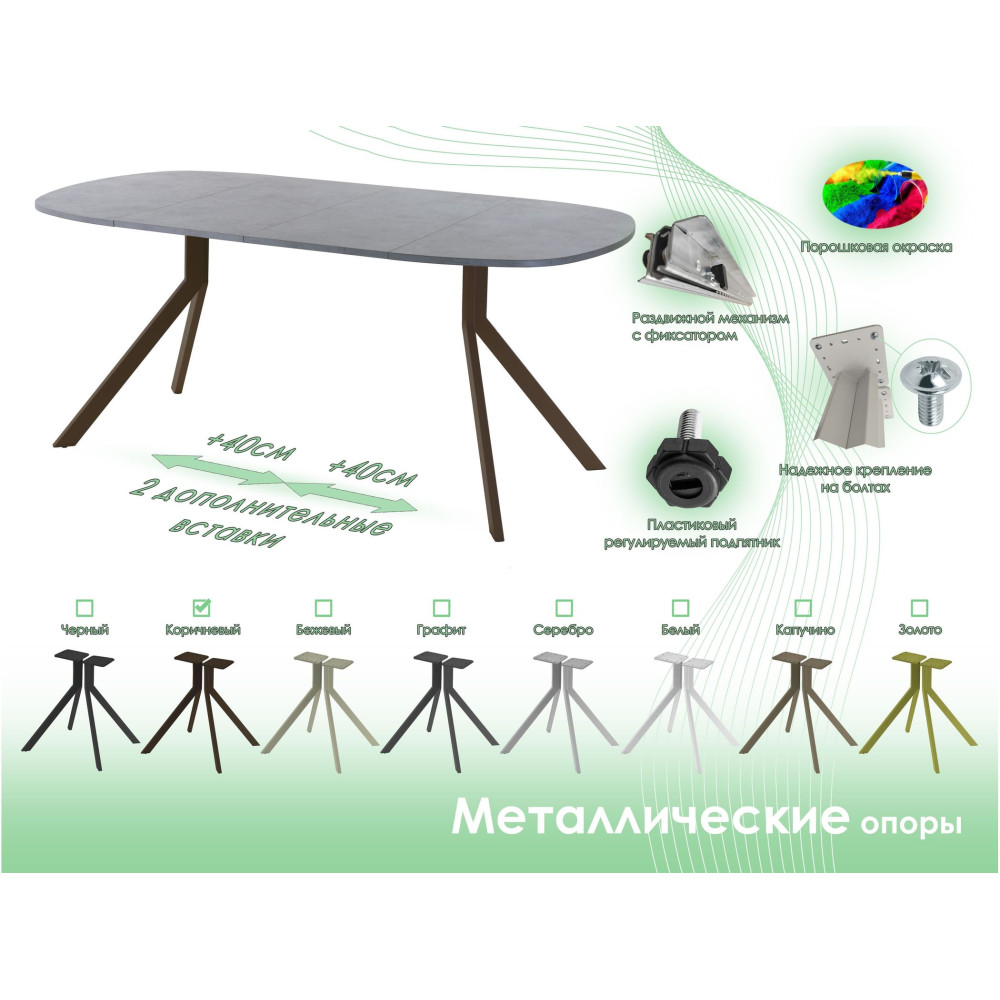 Стол AMС серии «SLIM» — это готовое решение для обеденной зоны дома, столовой или кафе. Раздвижной механизм с двумя вставками по 40 см позволяет увеличить столешницу, сохраняя пропорции и стиль. Стол оснащен двумя металлическими опорами с порошковой покраской, крепящимися болтами к столешнице, и регулируемыми подпятниками для защиты пола и выравнивания. Столешницы из ЛДСП «EGGER» толщиной 18 мм обеспечивают прочность и долговечность. Доступны различные формы столешниц (круг, канвикс, овал, полуовал, бочка) и комбинации опор и цветов. Поставляется в разобранном виде в транспортировочном коробе. Надежность конструкции гарантирует долгий срок службы при соблюдении правил эксплуатации.