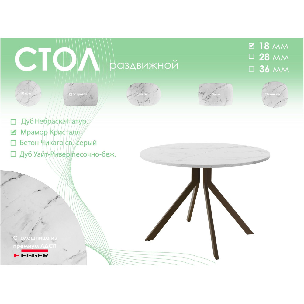 Обеденный стол AMC Elite (серии SLIM) / E18(900) D1 (коричневый/Мрамор Кристалл) 0 749.19BYN 881.40BYN