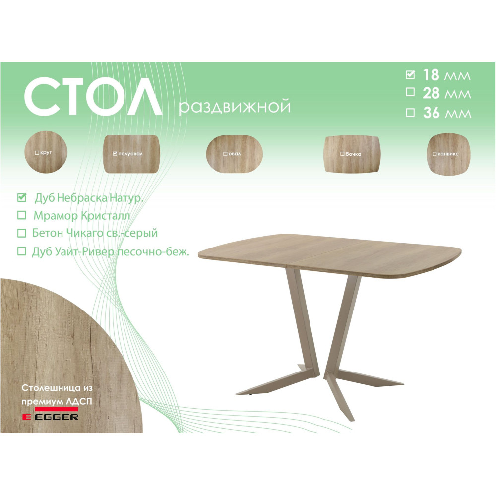 Тип столаобеденный стол Форма поставкив разобранном виде Форма столешницыполуовал