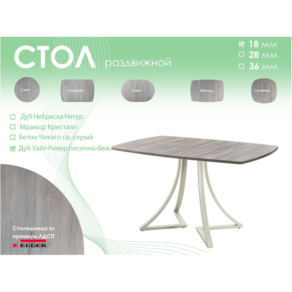 | Цвет столешницы | Дуб Уайт-Ривер песочно-бежевый |