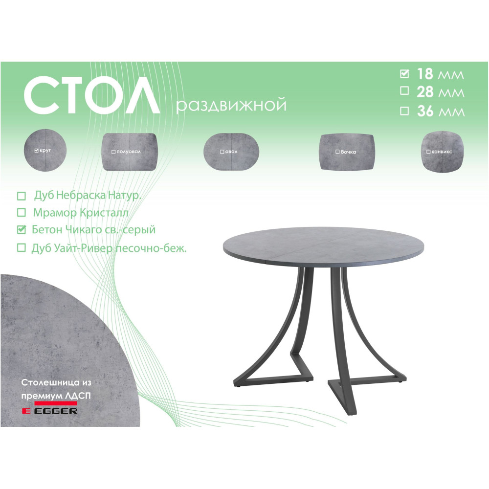 | Тип столаобеденный стол | Форма поставкив разобранном виде | Форма столешницыкруг |