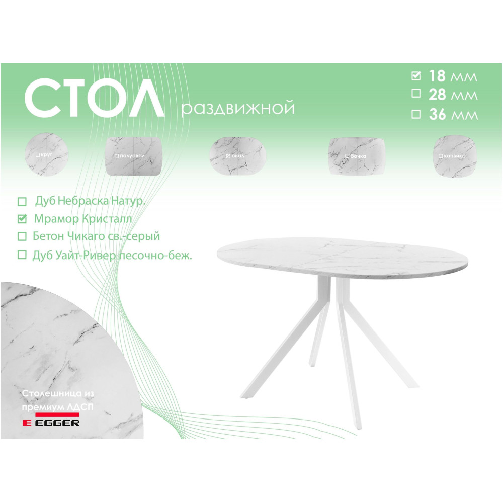 Обеденный стол AMC Elite (серии SLIM) / E18(1100) D3 (белый/Мрамор Кристалл) 0 643.50BYN 858BYN