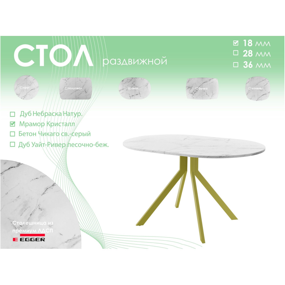 Тип столаобеденный стол | Форма поставкив разобранном виде | Форма столешницыовал |
