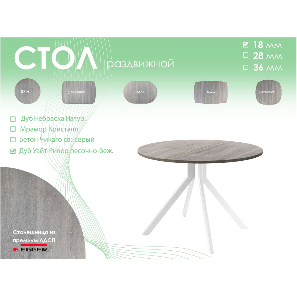 Обеденный стол AMC Elite (серии SLIM) / E18(800) D1 (белый/Дуб Уайт-Ривер песочно-бежевый) 0 631.80BYN 842.40BYN