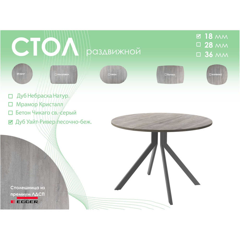 Тип столаобеденный стол | Форма поставкив разобранном виде | Форма столешницыкруг |