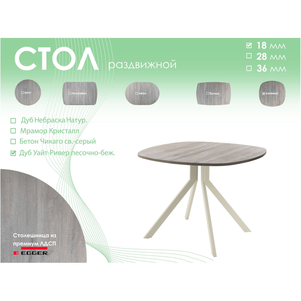 Обеденный стол AMC Elite (серии SLIM) / E18(900) D7 (бежевый/Дуб Уайт-Ривер песочно-бежевый) 0 661.05BYN 881.40BYN