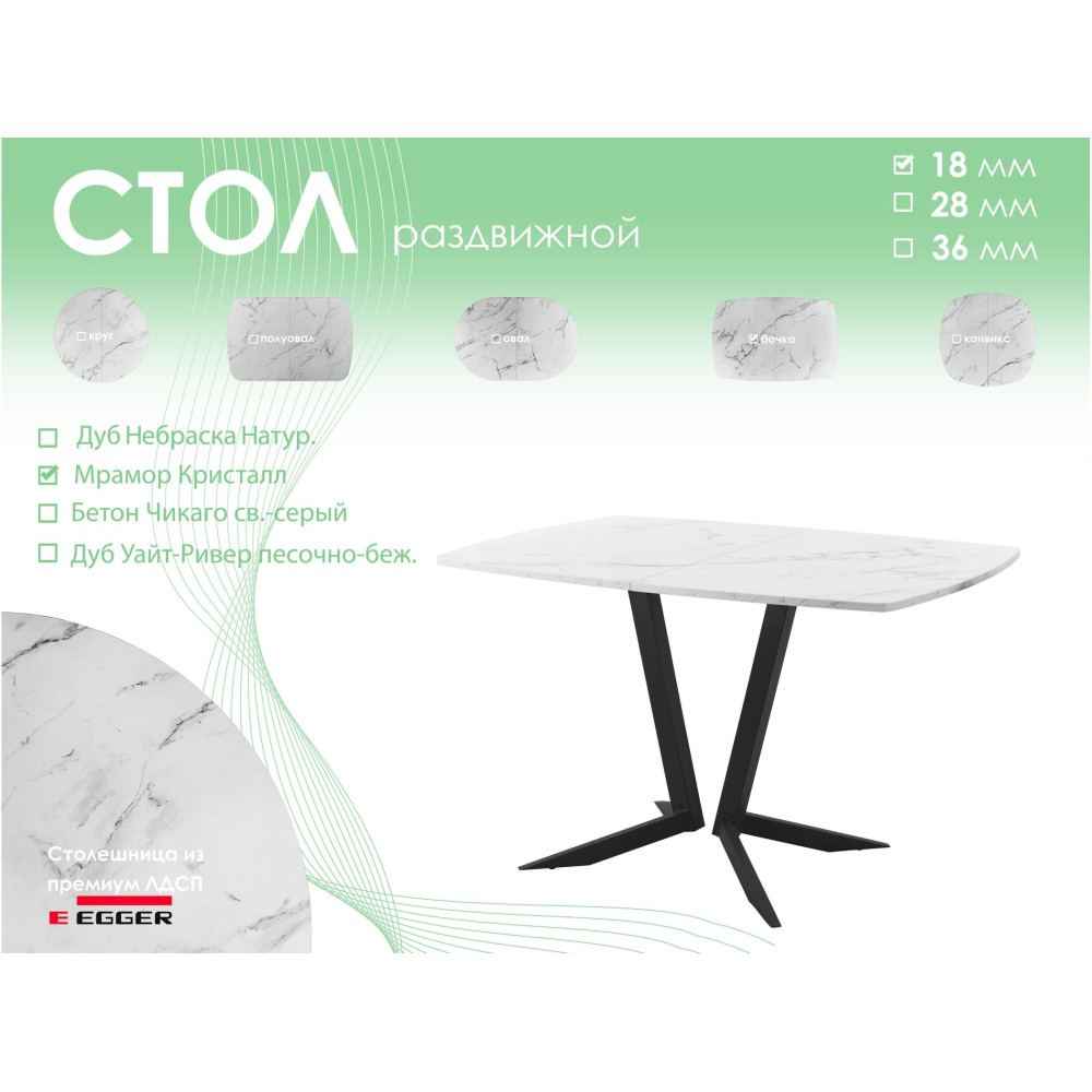 Тип столаобеденный стол | Форма поставкив разобранном виде | Форма столешницыбочка |