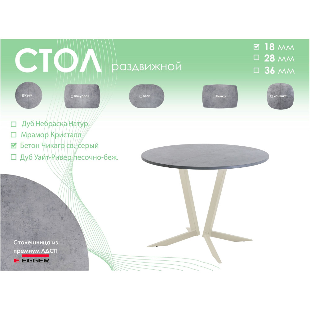 Тип столаобеденный стол | Форма поставкив разобранном виде | Форма столешницыкруг |