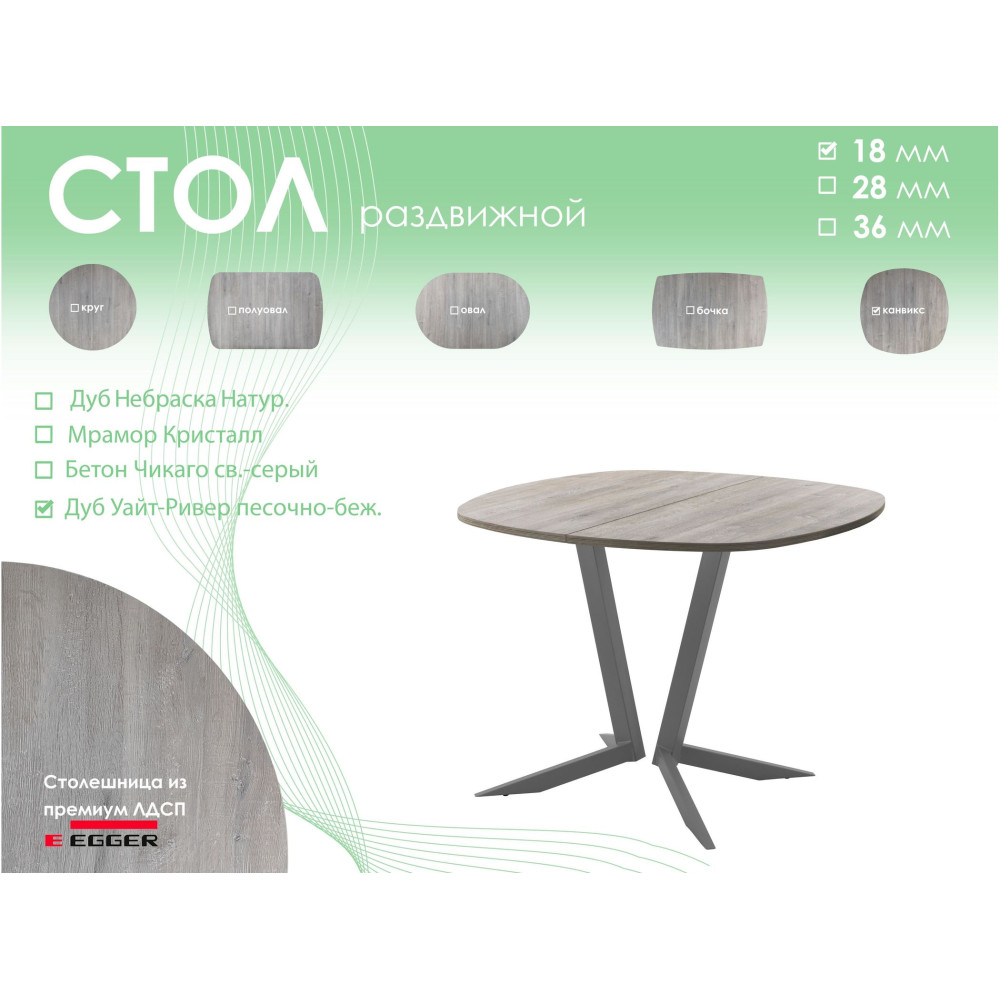 Тип столаобеденный стол | Форма поставкив разобранном виде | Форма столешницыканвикс |