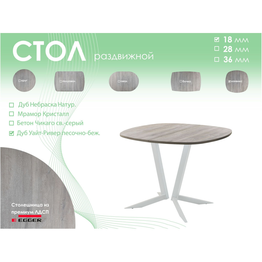 Тип столаобеденный стол | Форма поставкив разобранном виде | Форма столешницыканвикс |