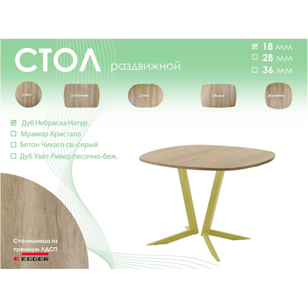 Тип столаобеденный стол | Форма поставкив разобранном виде | Форма столешницыканвикс |