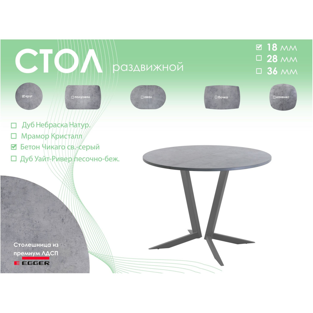 Тип столаобеденный стол | Форма поставкив разобранном виде | Форма столешницыкруг |