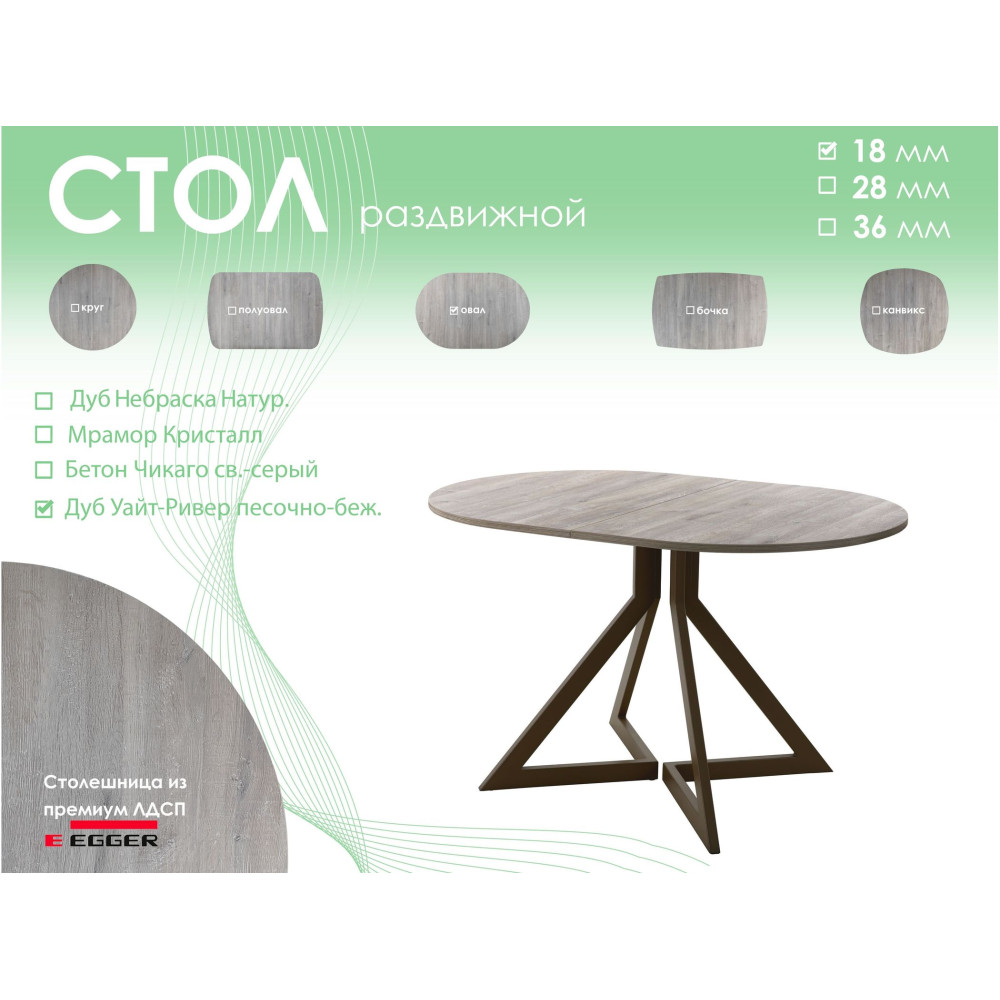 Тип столаобеденный стол Форма поставкив разобранном виде Форма столешницыовал