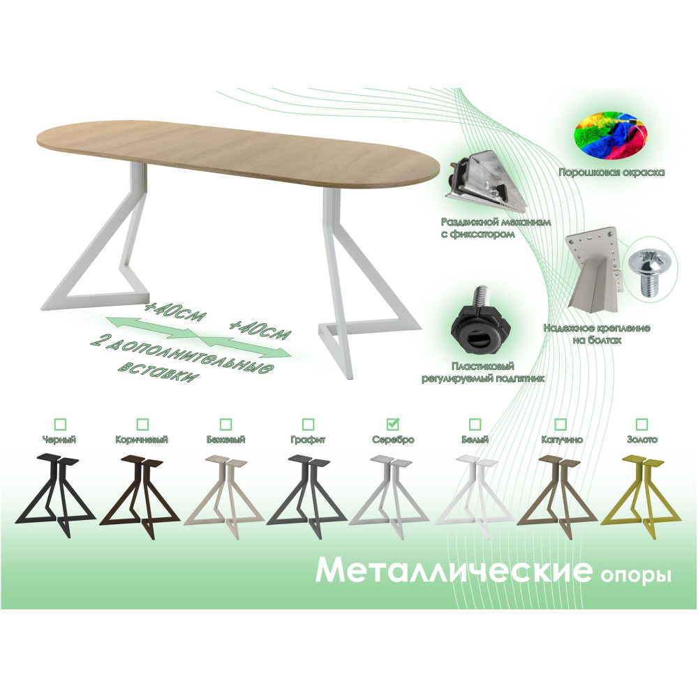На складе Код товара: E24 800 D1vn.kod.800+400+400.5.10 Обеденный стол AMC Elite (серии SLIM) / E24(800) D1 (серебро/Дуб Уайт-Ривер песочно-бежевый)