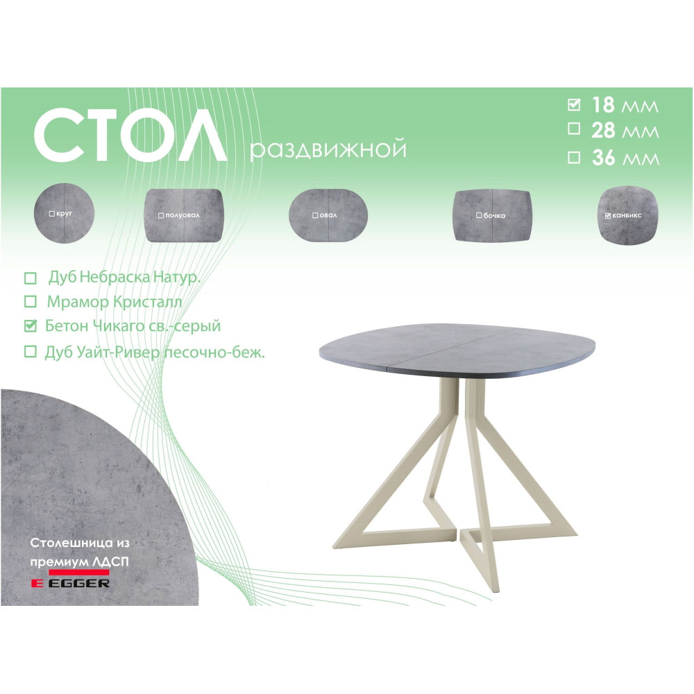 На складе Код товара: E18 800 D7vn.kod.800+400+400.3.9 Обеденный стол AMC Elite (серии SLIM) / E18(800) D7 (бежевый/Бетон Чикаго светло-серый)