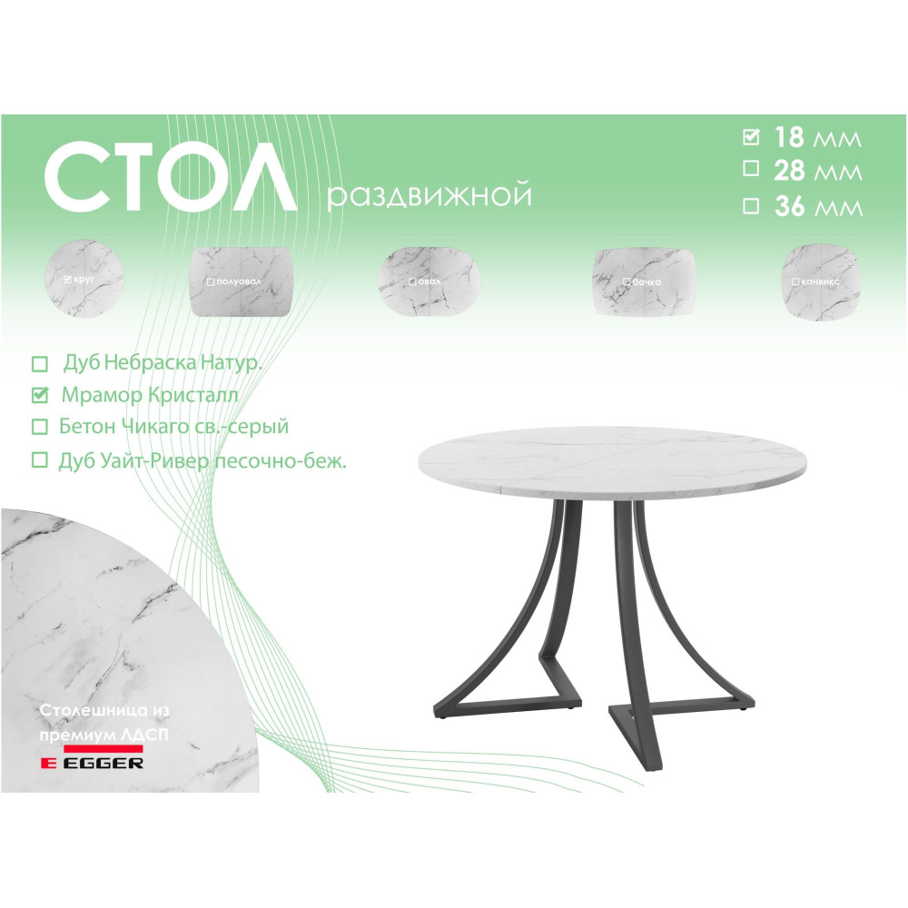 Тип столаобеденный стол | Форма поставкив разобранном виде | Форма столешницыкруг |