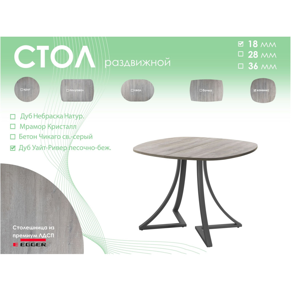Тип столаобеденный стол | Форма поставкив разобранном виде | Форма столешницыканвикс |