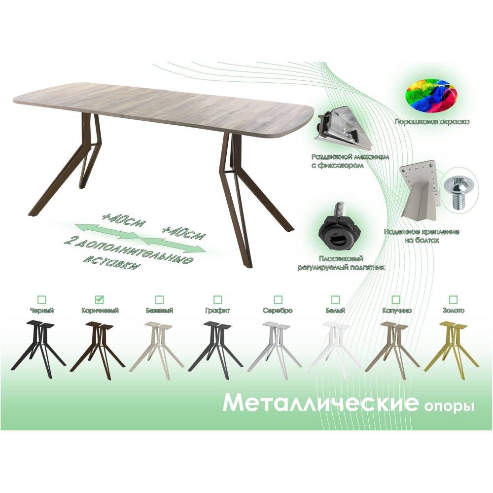 Стол AMС серии «SLIM» — это готовое решение для обеденной зоны дома, столовой или кафе. Раздвижной механизм с двумя вставками по 40 см позволяет увеличить столешницу, сохраняя пропорции и стиль. Стол оснащен двумя металлическими опорами с порошковой покраской, крепящимися болтами к столешнице, и регулируемыми подпятниками для защиты пола и выравнивания. Столешницы из ЛДСП «EGGER» толщиной 18 мм обеспечивают прочность и долговечность. Доступны различные формы столешниц (круг, канвикс, овал, полуовал, бочка) и комбинации опор и цветов. Поставляется в разобранном виде в транспортировочном коробе. Надежность конструкции гарантирует долгий срок службы при соблюдении правил эксплуатации.