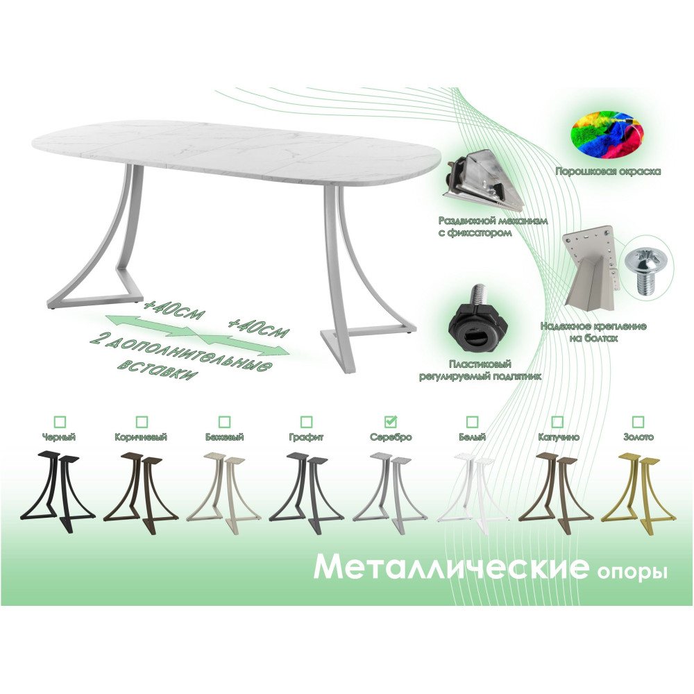 Обеденный стол AMC Elite (серии SLIM) / E24(800) D7 (серебро/Мрамор Кристалл)