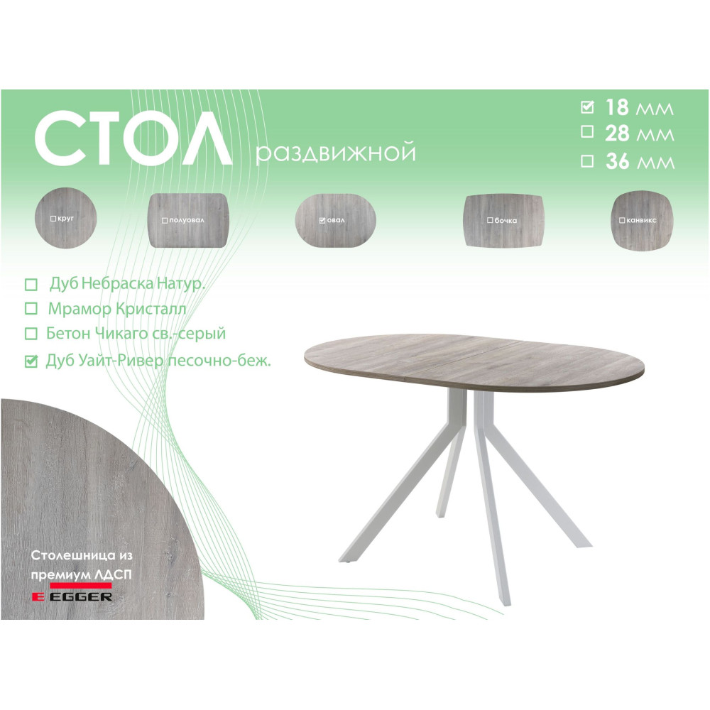 Тип столаобеденный стол | Форма поставкив разобранном виде | Форма столешницыовал |