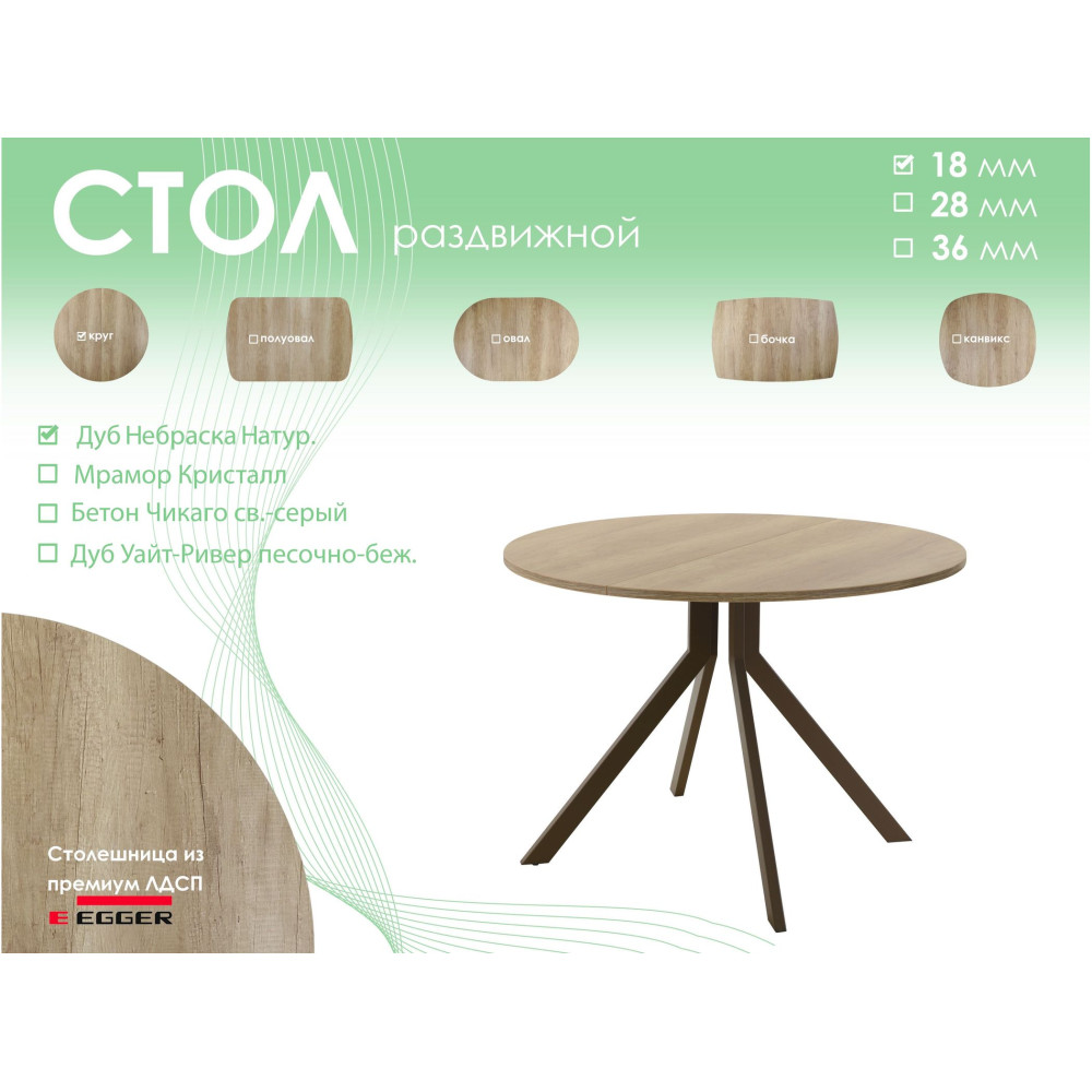 Тип столаобеденный стол | Форма поставкив разобранном виде | Форма столешницыкруг |