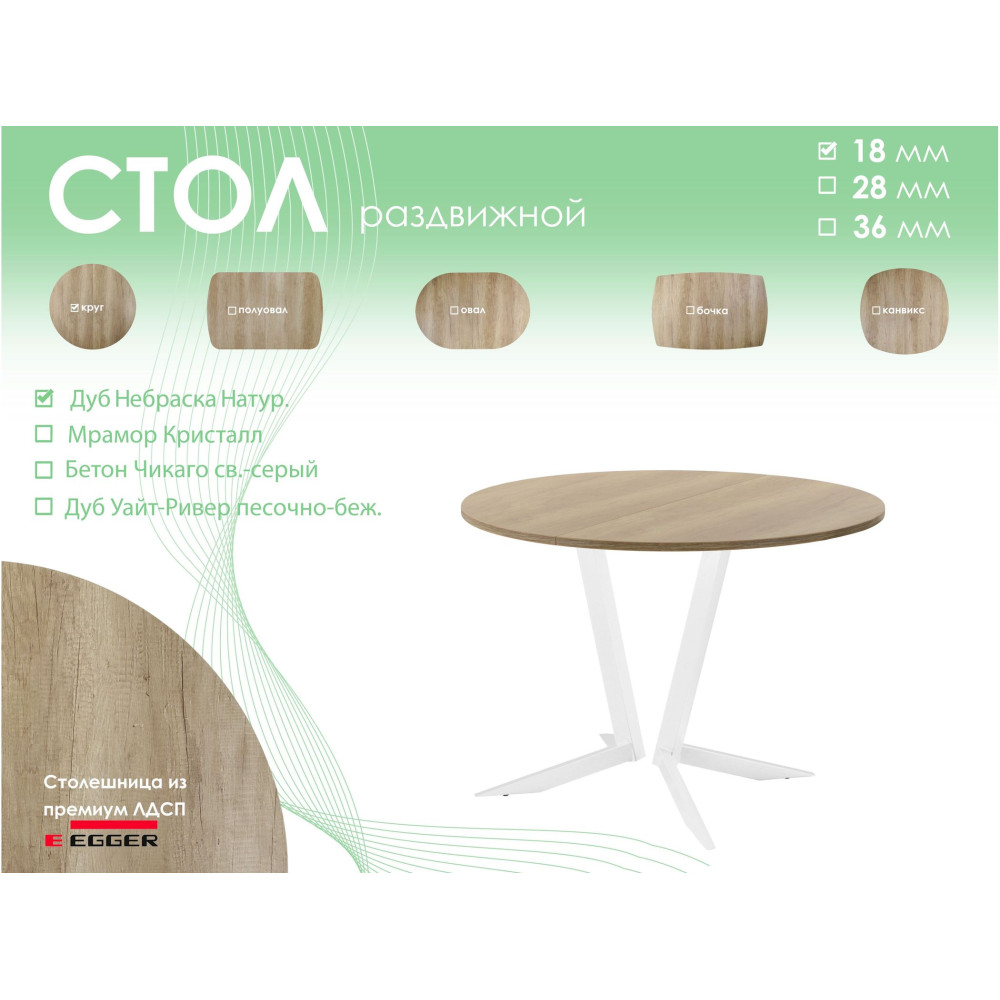 | Тип столаобеденный стол | Форма поставкив разобранном виде | Форма столешницыкруг |