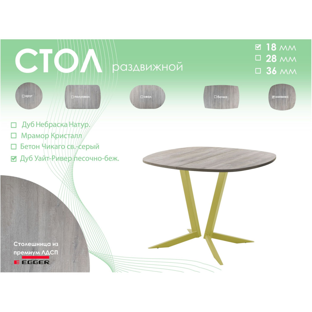 Тип столаобеденный стол | Форма поставкив разобранном виде | Форма столешницыканвикс |