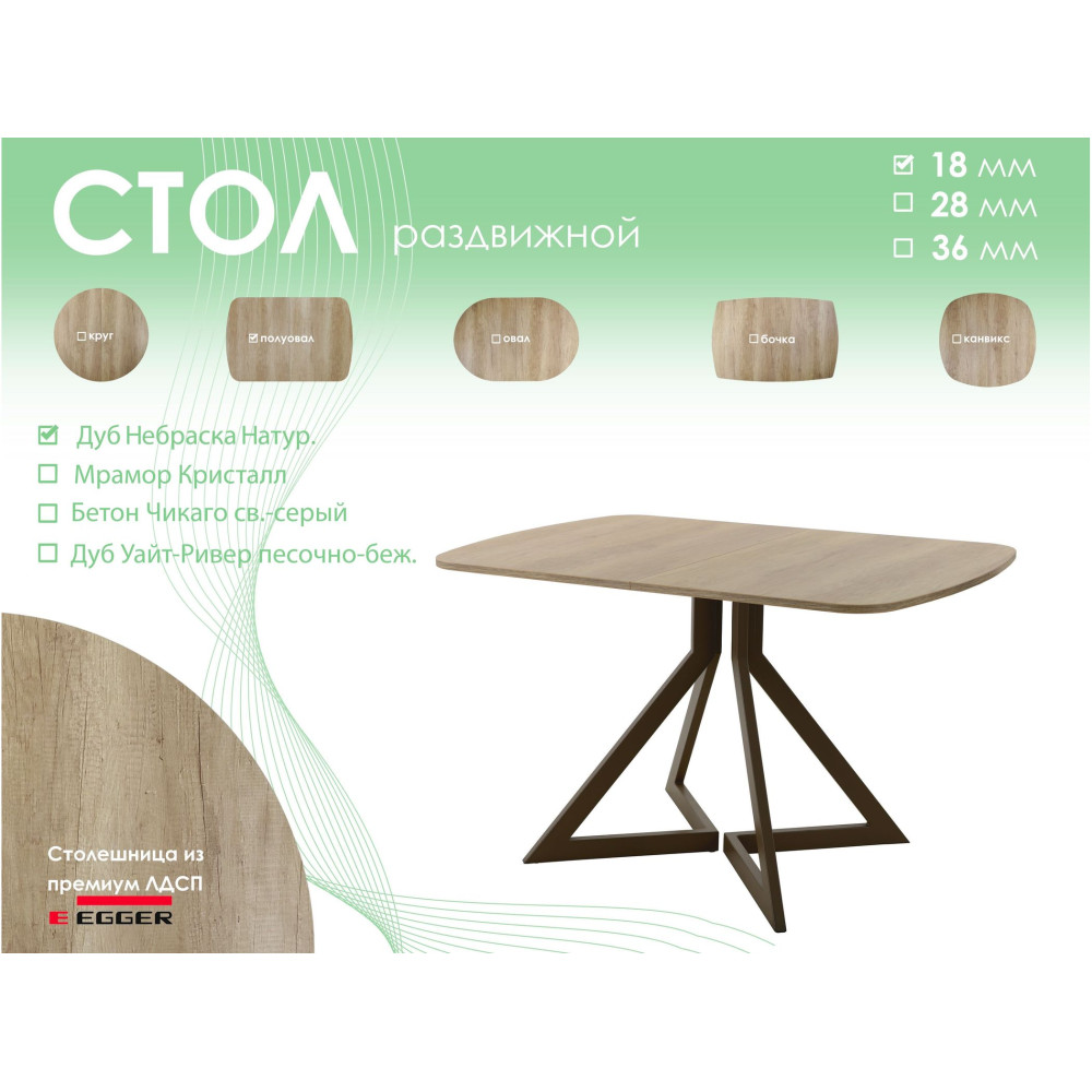 Тип столаобеденный стол | Форма поставкив разобранном виде | Форма столешницыполуовал |