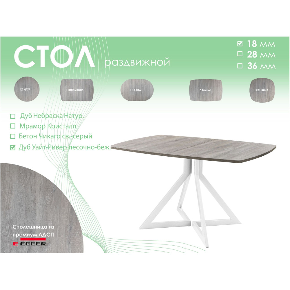 Обеденный стол AMC Elite (серии SLIM) / E20(1100) D6 (белый/Дуб Уайт-Ривер песочно-бежевый) 0 678.60BYN 904.80BYN