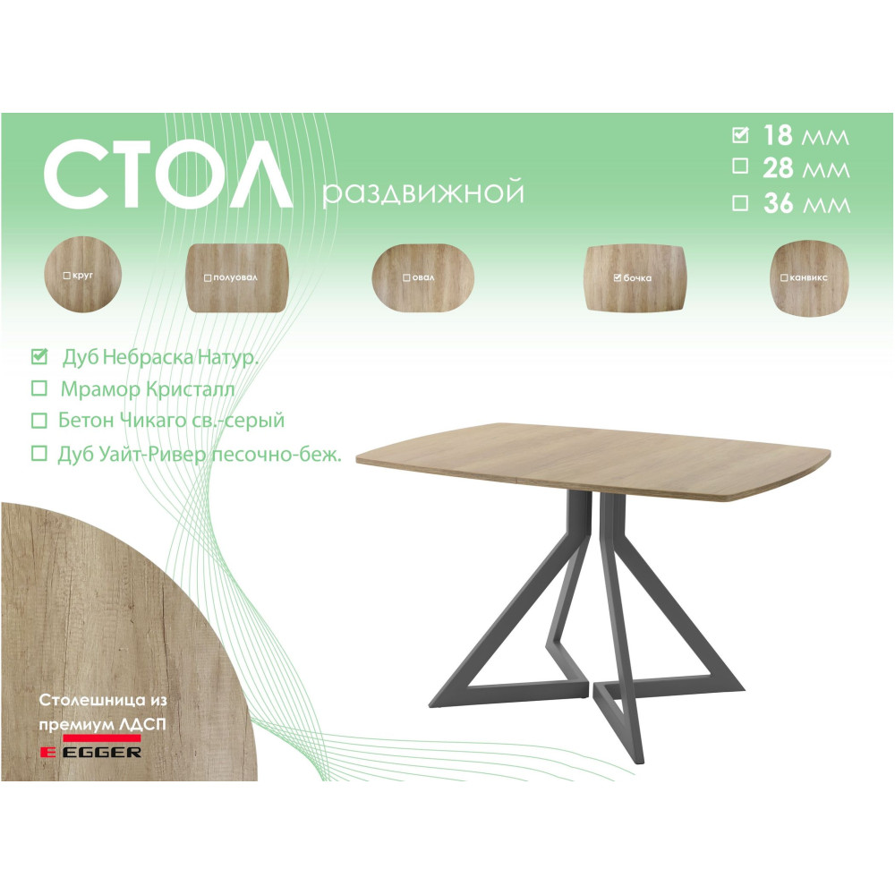 Тип столаобеденный стол | Форма поставкив разобранном виде | Форма столешницыбочка |