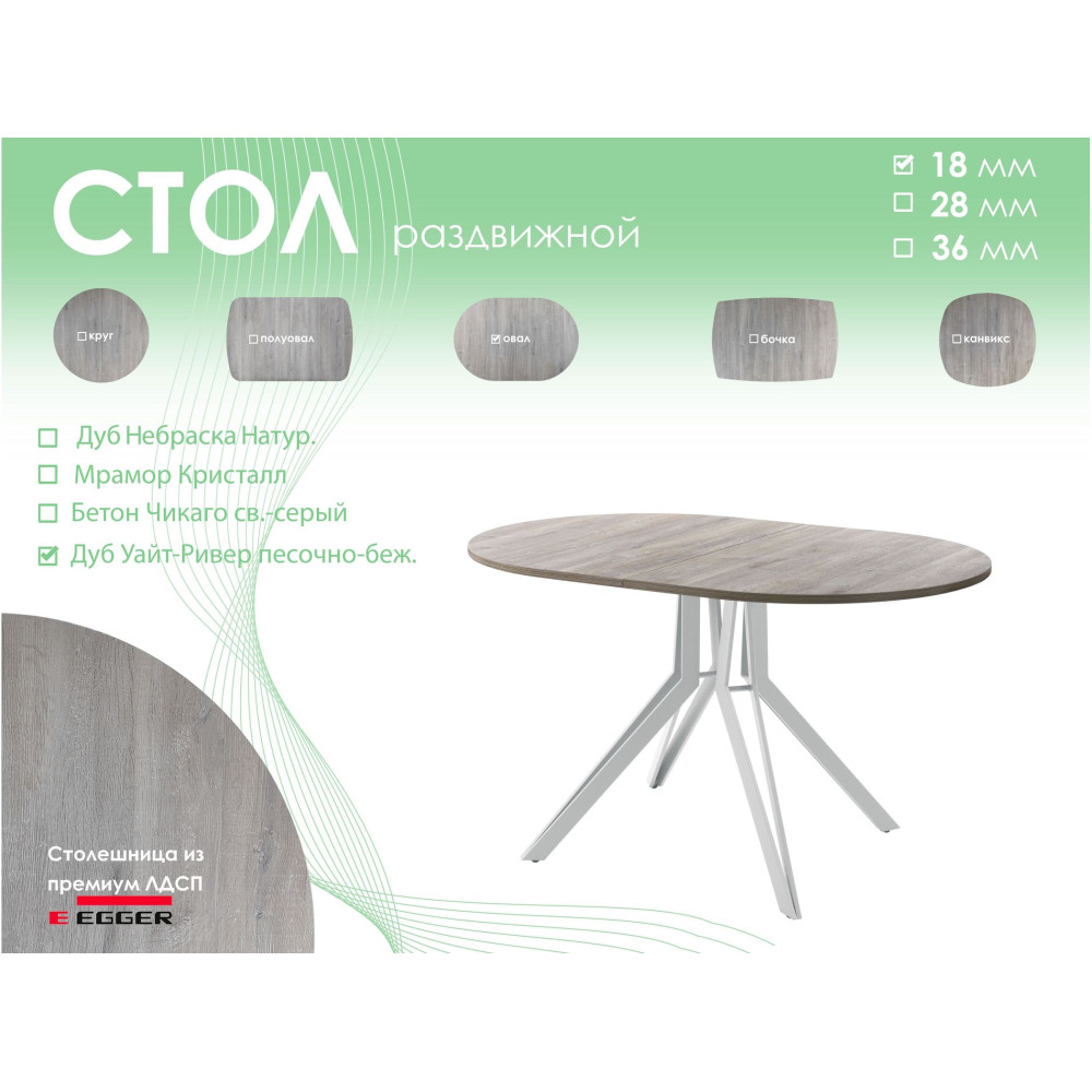Обеденный стол AMC Elite (серии SLIM) / E21(1100) D3 (серебро/Дуб Уайт-Ривер песочно-бежевый) 0 769.08BYN 904.80BYN