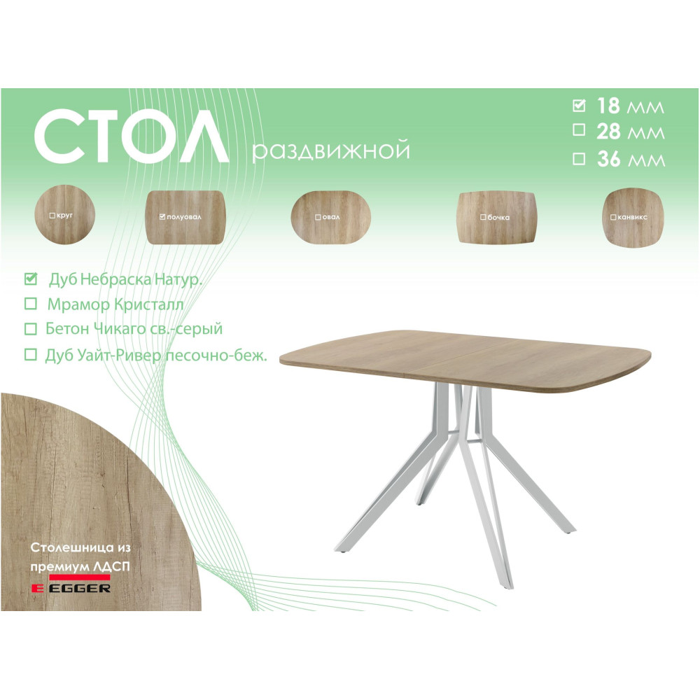 На складе Код товара: E21 800 D7vn.kod.800+400+400.5.4 Обеденный стол AMC Elite (серии SLIM) / E21(800) D7 (серебро/Дуб Небраска Натуральный)