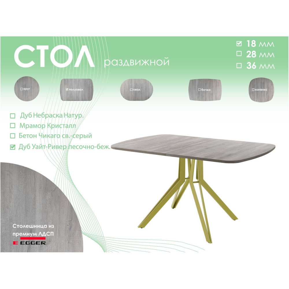 Тип столаобеденный стол | Форма поставкив разобранном виде | Форма столешницыполуовал |