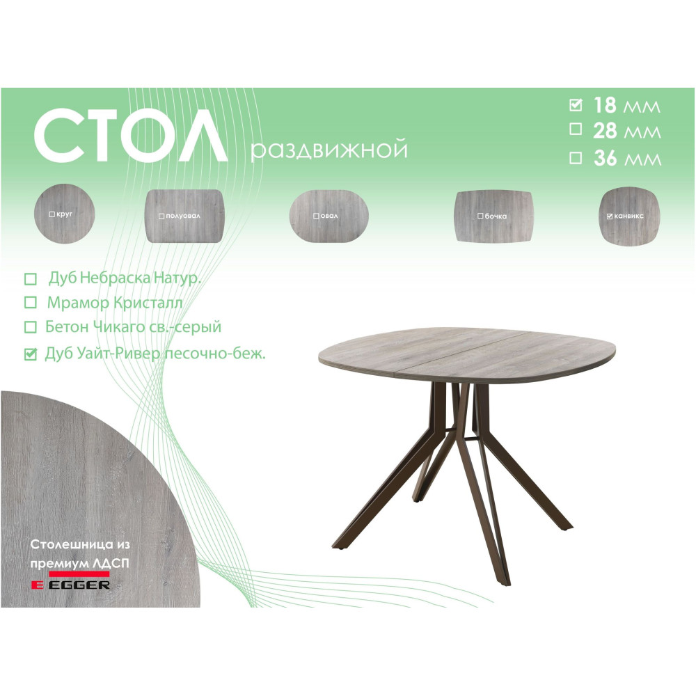 Тип столаобеденный стол | Форма поставкив разобранном виде | Форма столешницыканвикс |