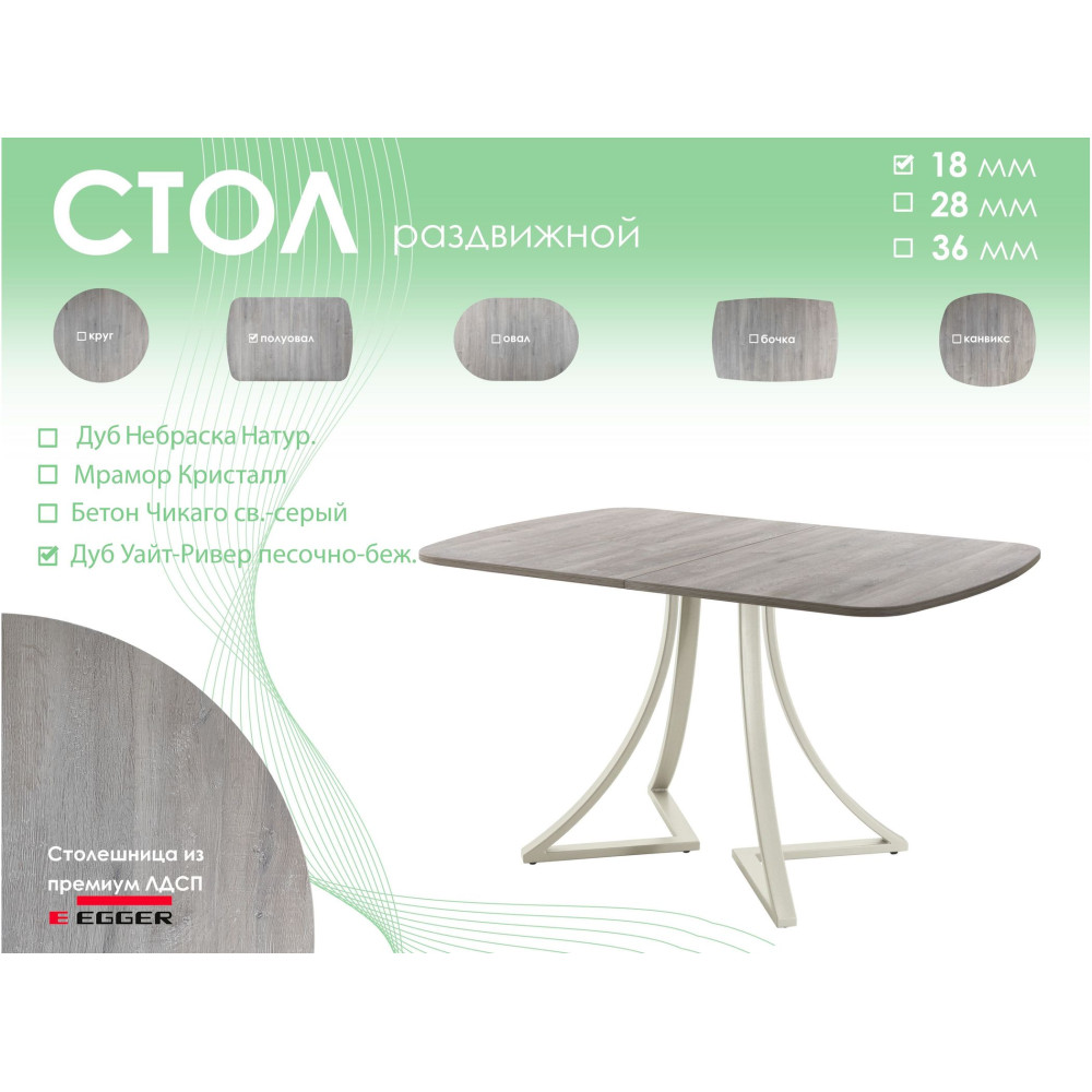 Тип столаобеденный стол | Форма поставкив разобранном виде | Форма столешницыполуовал |