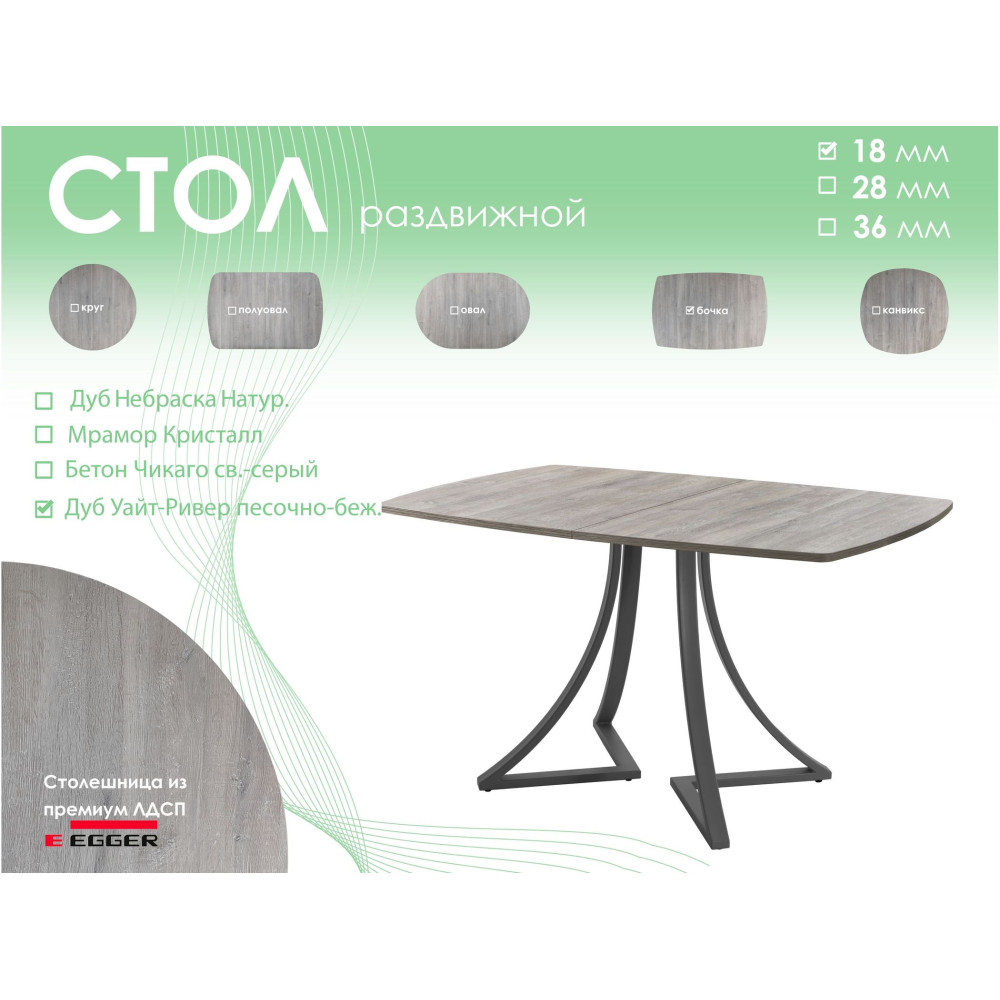 Тип столаобеденный стол Форма поставкив разобранном виде Форма столешницыбочка