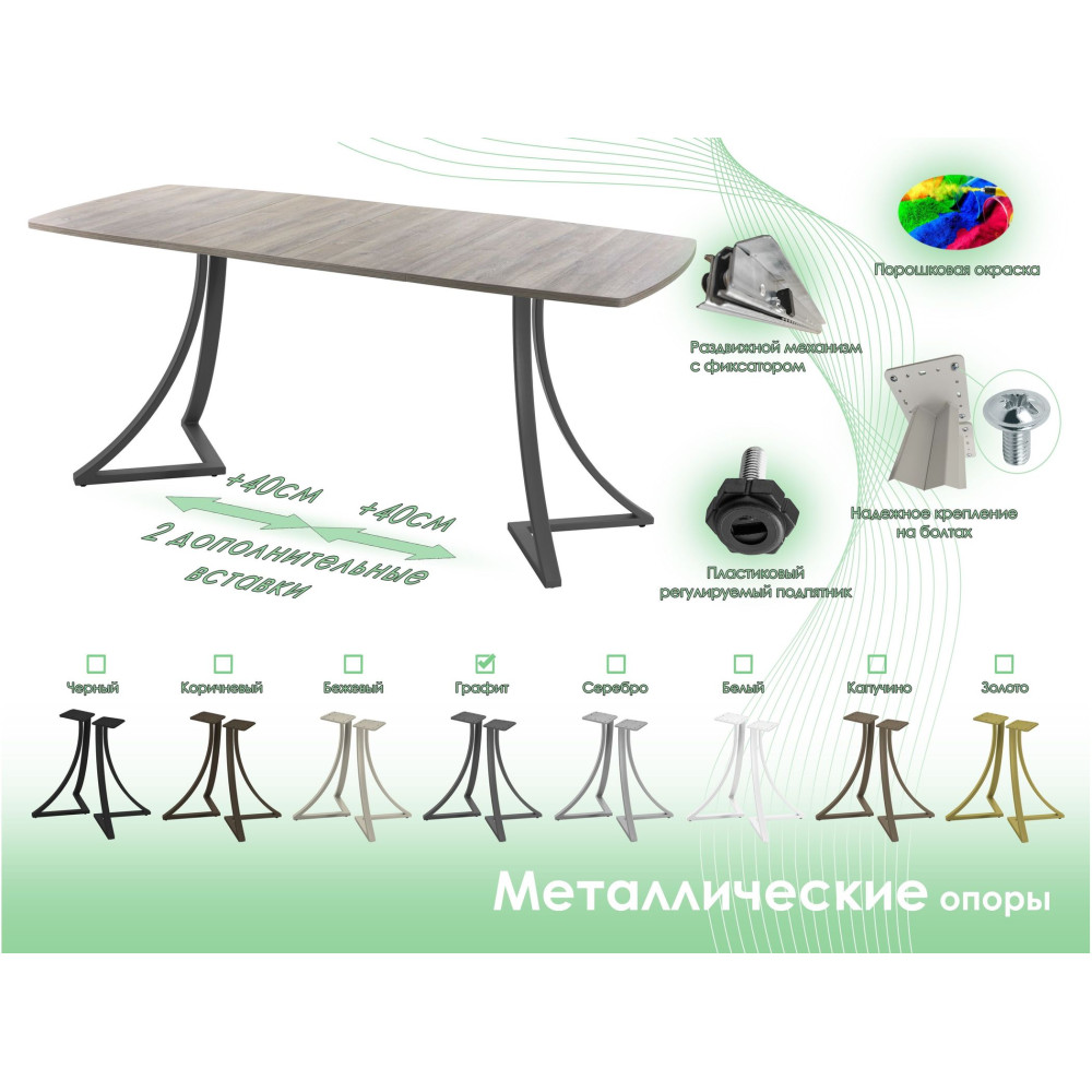 На складе Код товара: E24 1100 D6vn.kod.1100+400+400.4.10 Обеденный стол AMC Elite (серии SLIM) / E24(1100) D6 (графит/Дуб Уайт-Ривер песочно-бежевый)
