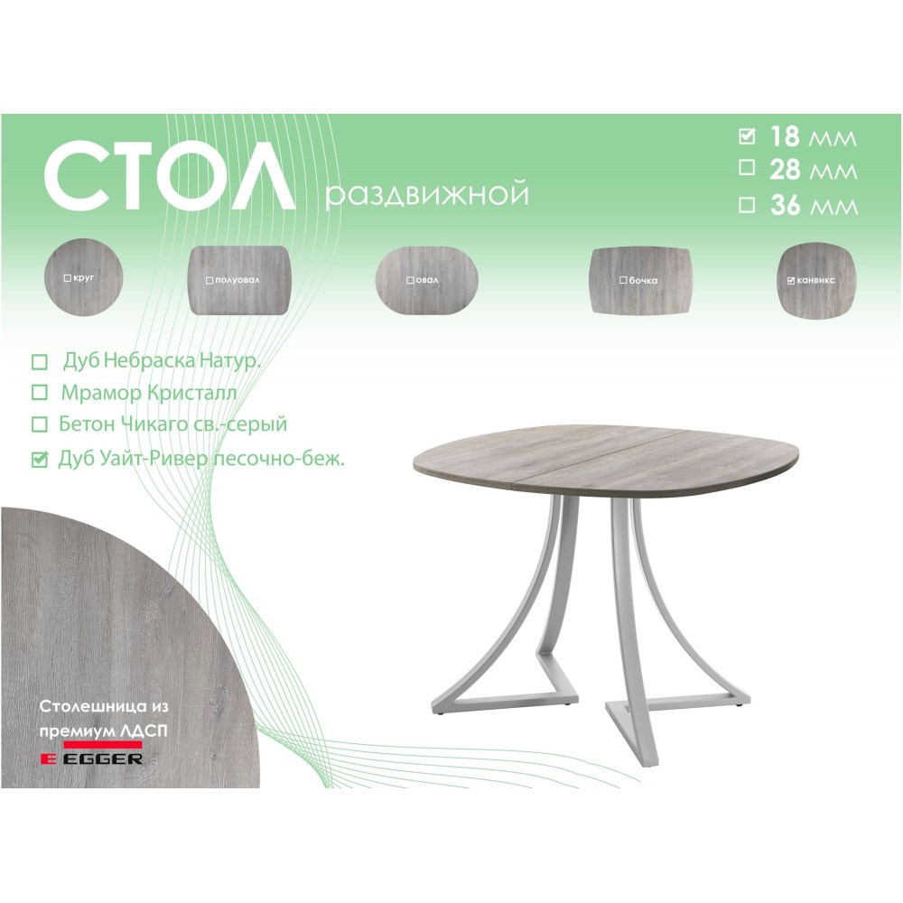Тип столаобеденный стол | Форма поставкив разобранном виде | Форма столешницыканвикс |