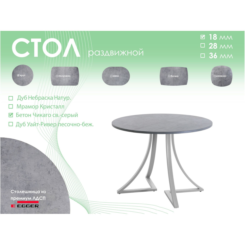 Тип столаобеденный стол | Форма поставкив разобранном виде | Форма столешницыкруг |