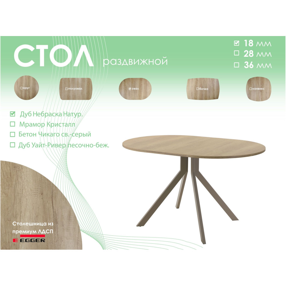 Тип столаобеденный стол | Форма поставкив разобранном виде | Форма столешницыовал |