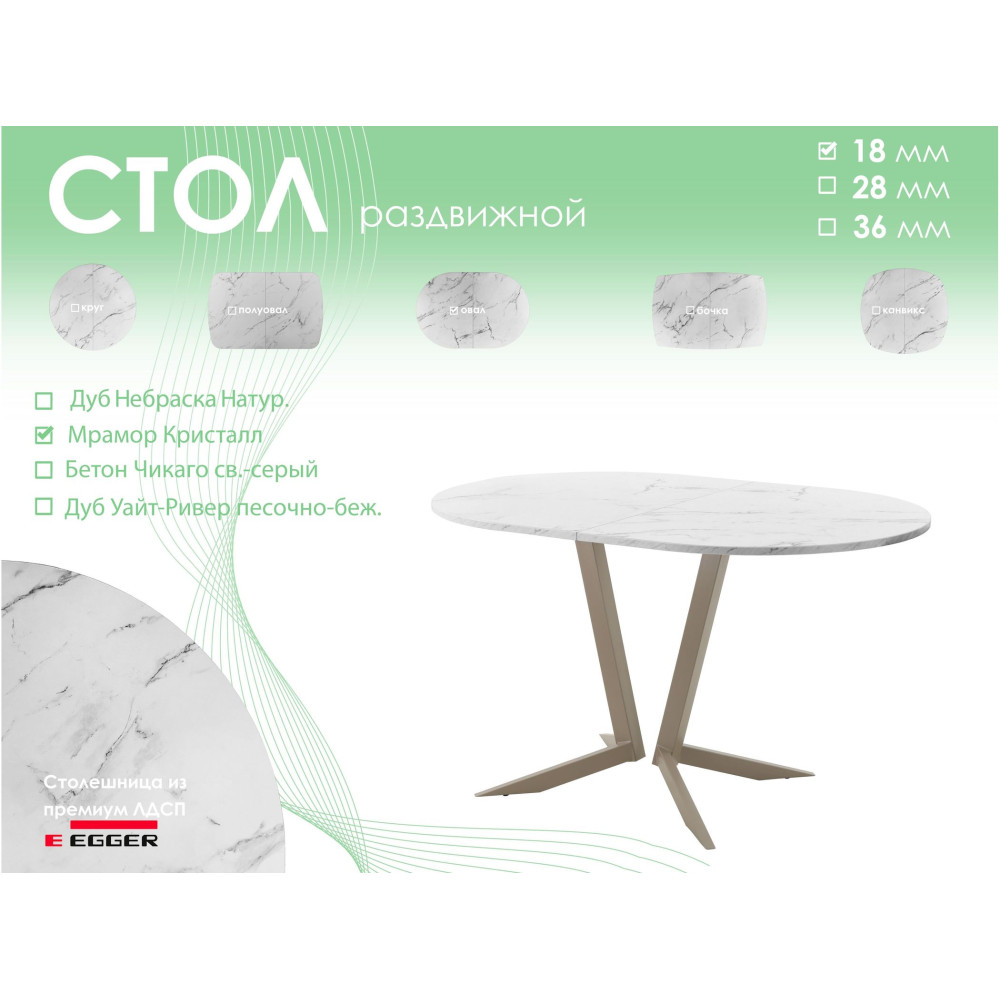 Тип столаобеденный стол | Форма поставкив разобранном виде | Форма столешницыовал |