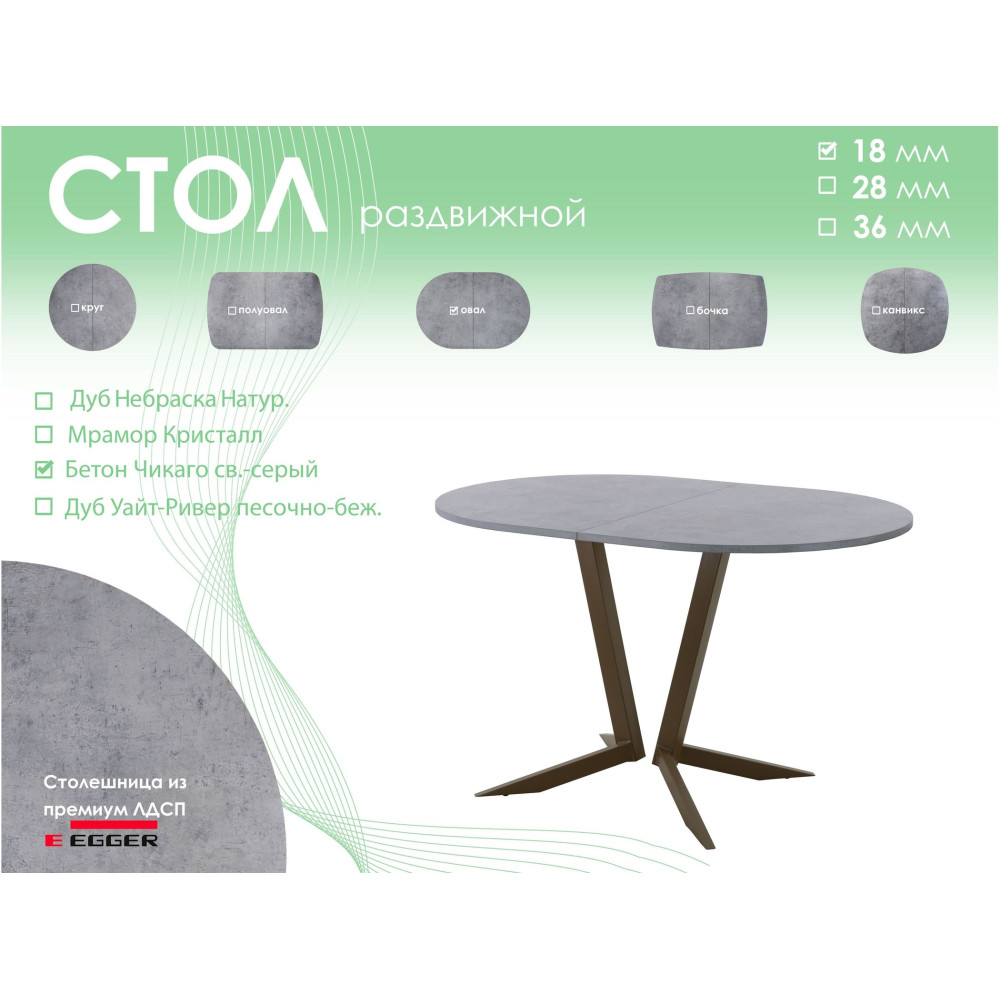 Тип столаобеденный стол | Форма поставкив разобранном виде | Форма столешницыовал |