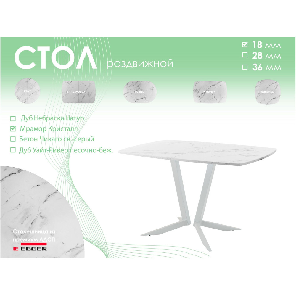 Тип столаобеденный стол | Форма поставкив разобранном виде | Форма столешницыбочка |