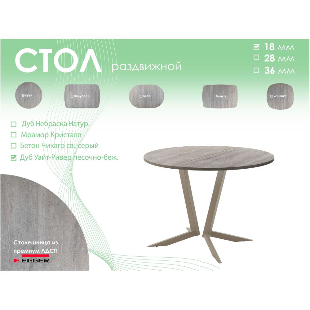 Тип столаобеденный стол | Форма поставкив разобранном виде | Форма столешницыкруг |