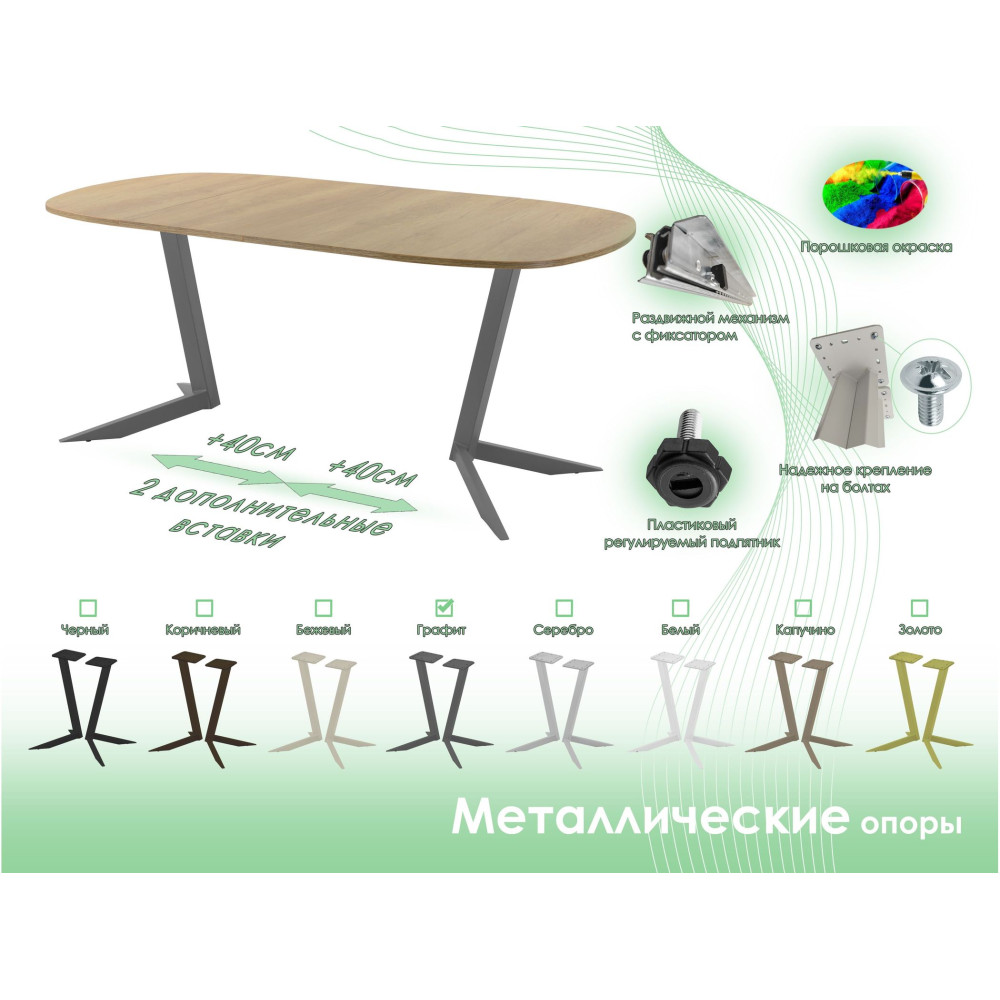 На складе Код товара: E19 800 D7vn.kod.800+400+400.5.4 Обеденный стол AMC Elite (серии SLIM) / E19(800) D7 (серебро/Дуб Небраска Натуральный)