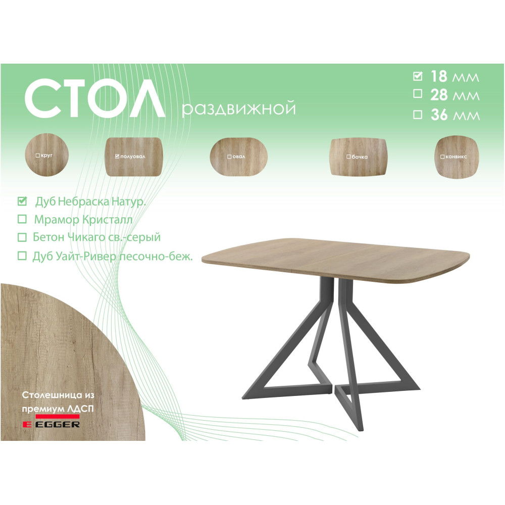 Тип столаобеденный стол | Форма поставкив разобранном виде | Форма столешницыполуовал |