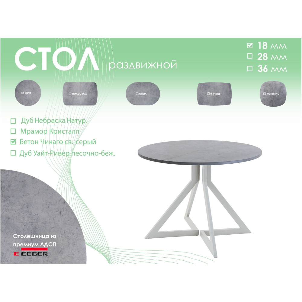 Тип столаобеденный стол | Форма поставкив разобранном виде | Форма столешницыкруг |