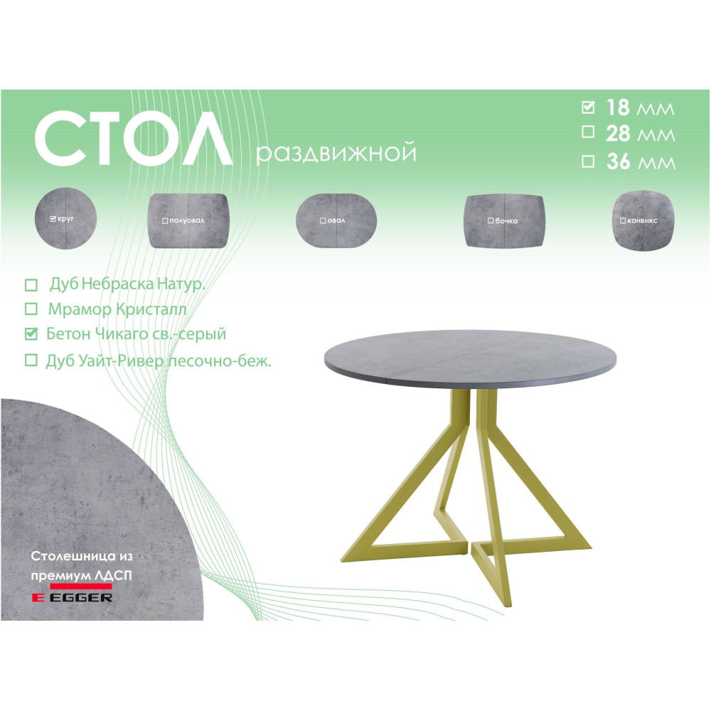 Тип столаобеденный стол | Форма поставкив разобранном виде | Форма столешницыкруг |