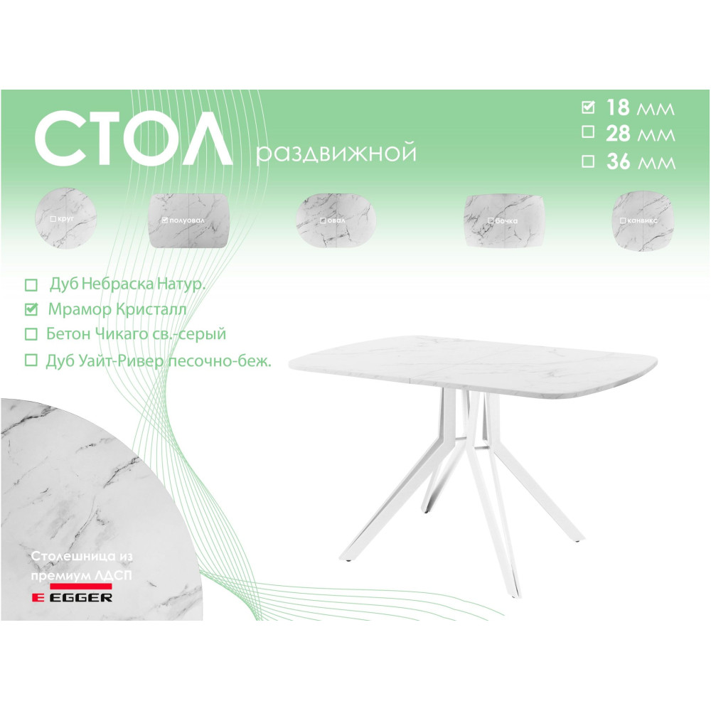 Обеденный стол AMC Elite (серии SLIM) / E21(1200) D2 (белый/Мрамор Кристалл) 0 719.55BYN 959.40BYN