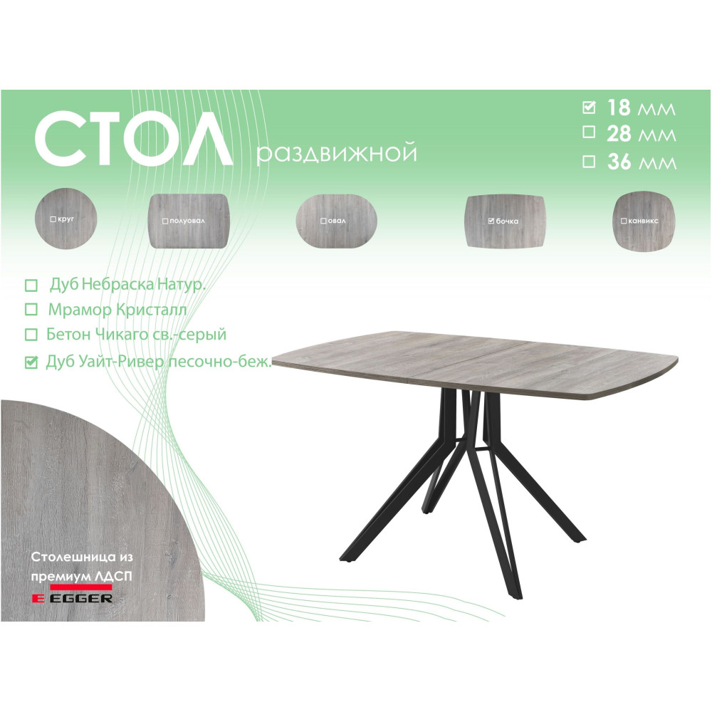 Тип столаобеденный стол Форма поставкив разобранном виде Форма столешницыбочка